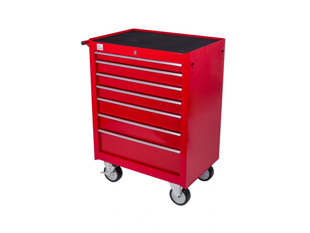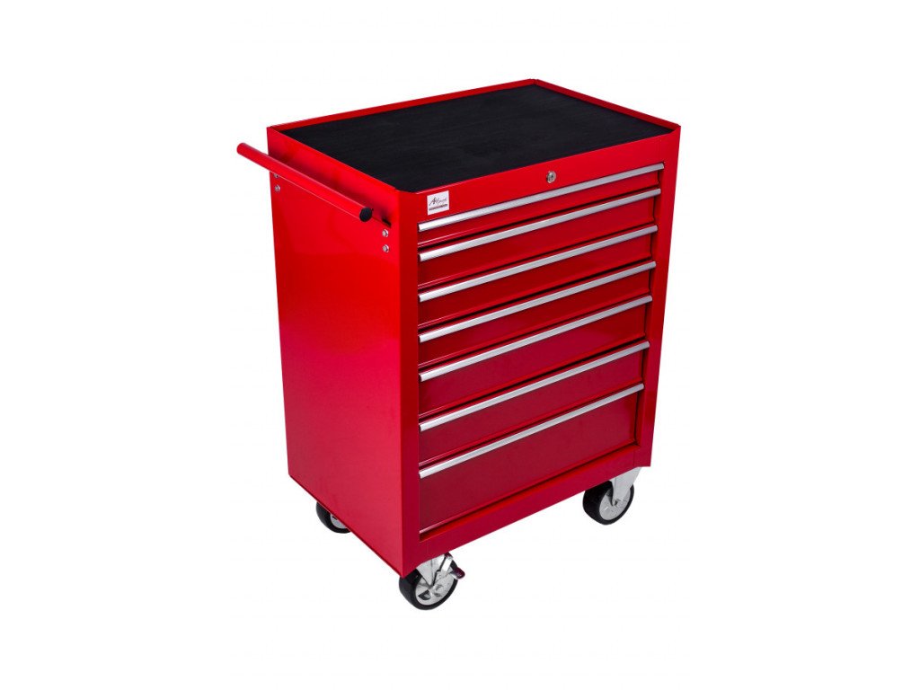 Dílenský vozík je celokovový se sedmi zásuvkami a pracovní plochou.
