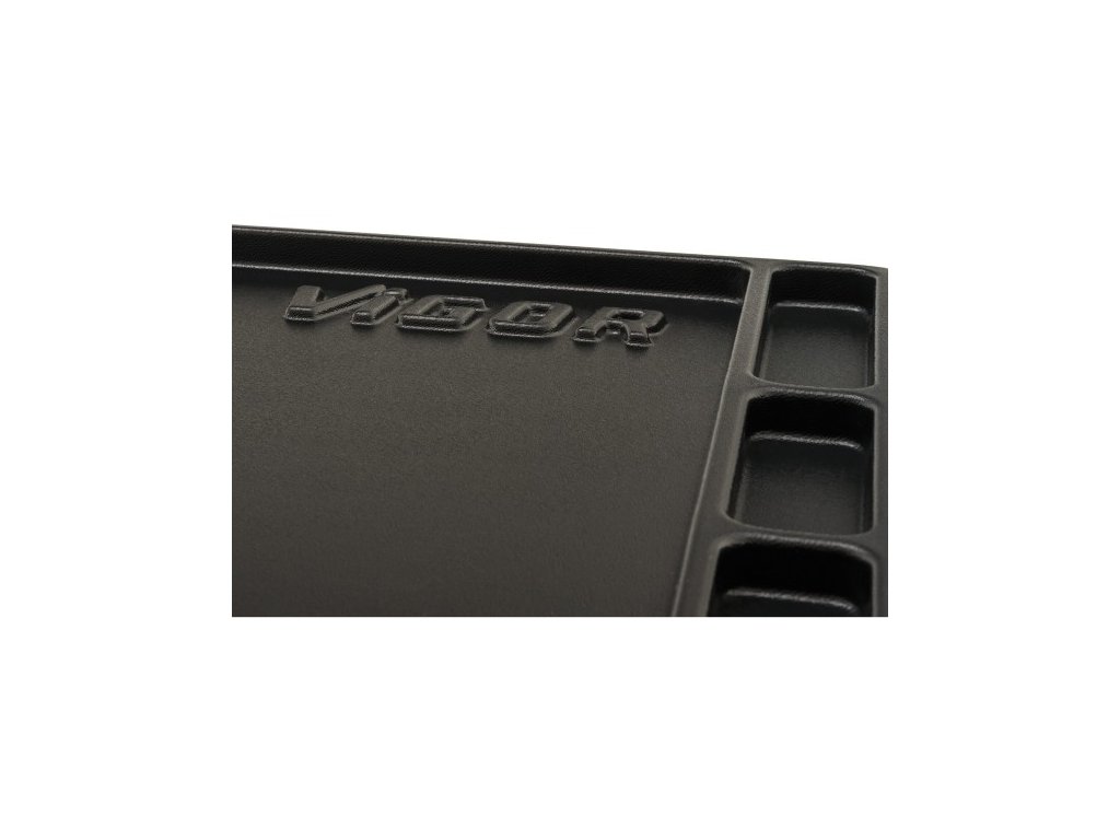 Dílenský vozík je celokovový, samotná pracovní plocha dílenského vozíku je z tvrzeného plastu s prolisy pro uložení drobného montážního materiálu.