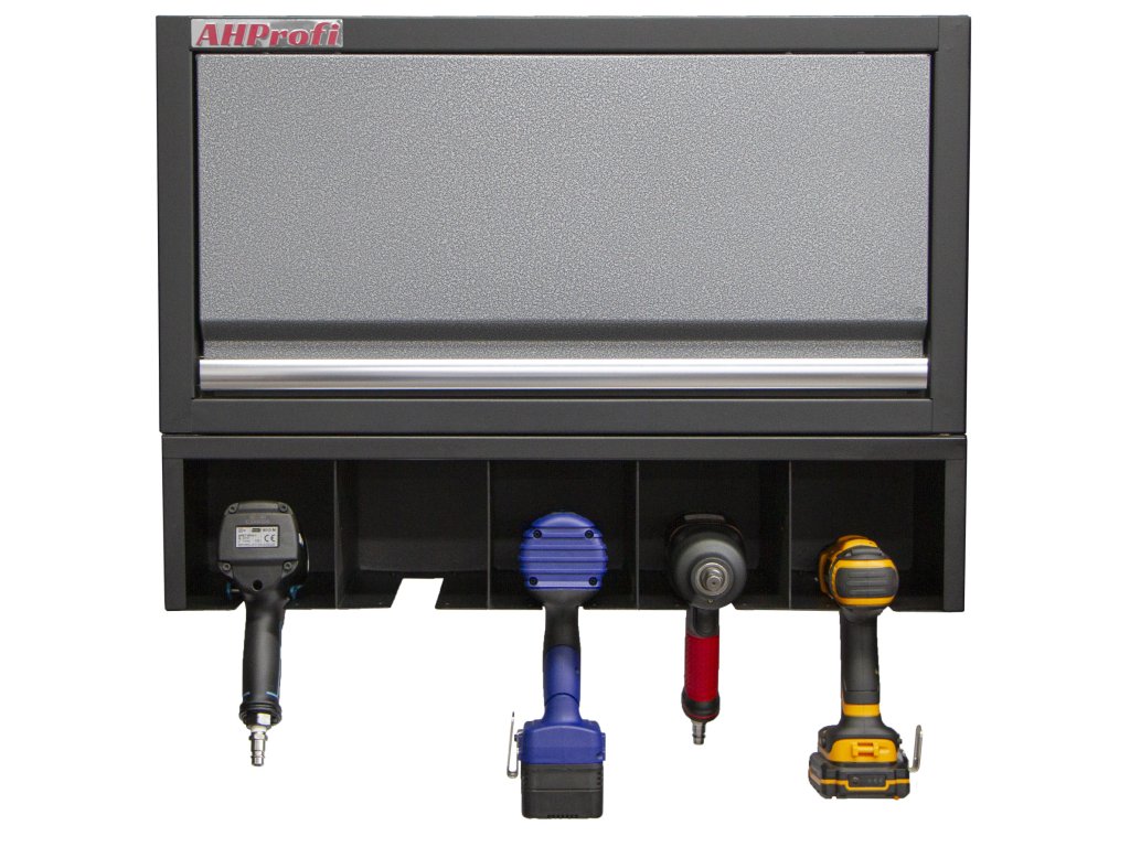 Držák se hodí zejména do dílenských sestav a je uzpůsoben přímo pod závěsné skříňky.