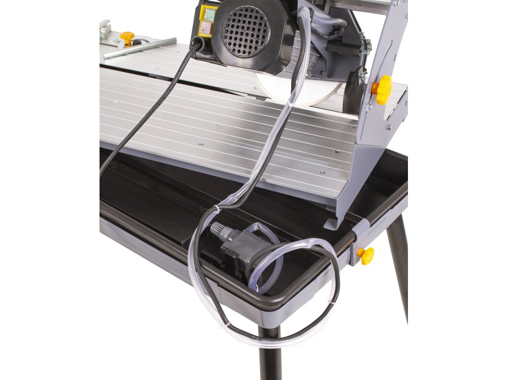 Při řezání je také důležité myslet na chlazení kotouče o které se stará elektrické čerpadlo na vodu umístěné ve vaničce přímo pod řezačkou.