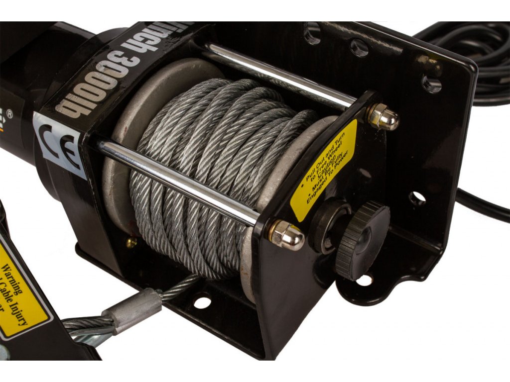 Napájení navijáku probíhá připojením na 12 V akumulátor automobilu, obsluha pomocí dálkového ovládání na 3 m přípojném kabelu.