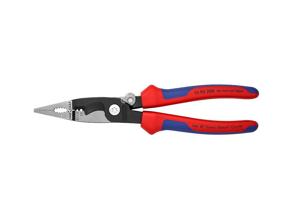 - Multifunkční kleště pro elektroinstalace- na uchopování plochého i kulatého materiálu, ohýbání, odstranění otřepu, štípání kabelů, odizolování a krimpování koncových dutinek