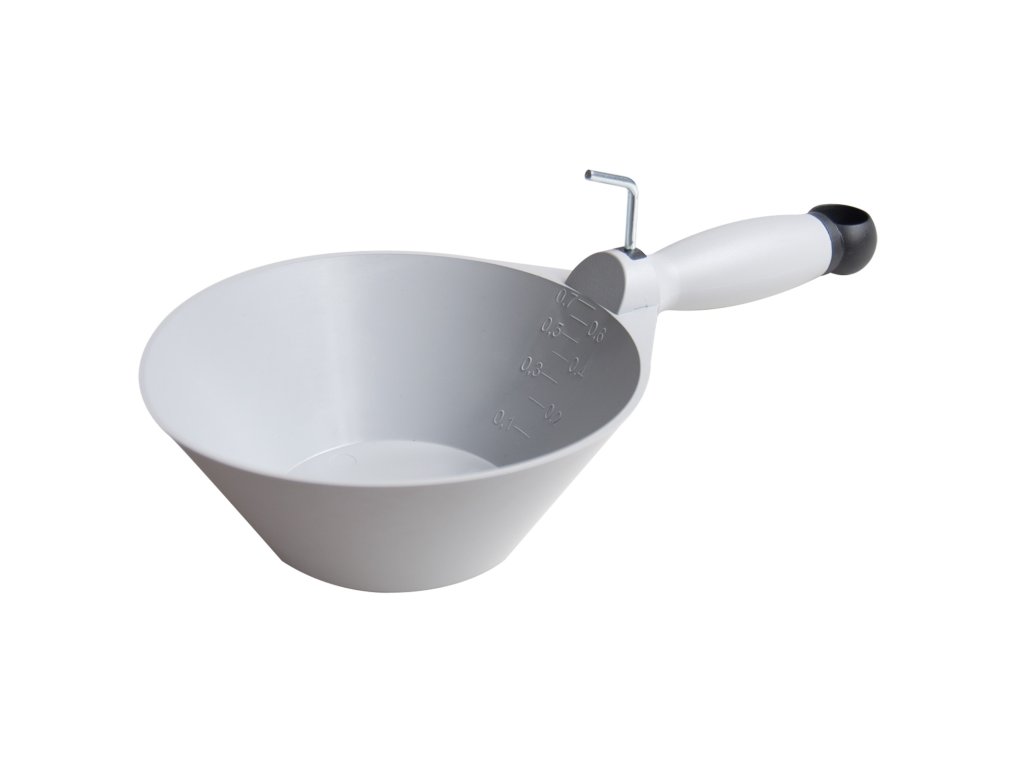 Plastová naběračka na míchání sádry, tmelů, lepidel apod. Dobře umyvatelný materiál, díky jeho pružnosti lze lehce vyklepnout i ztvrdlou hmotu.Doplňkové parametry