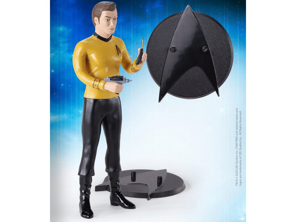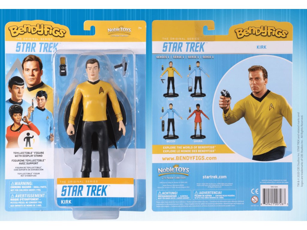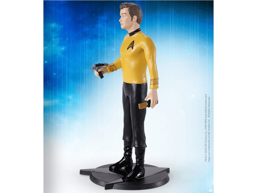 Polohovatelná figurka Kirka s phaserem a komunikátorem ze seriálu Star Trek potěší každého sběratele! Figurku můžete polohovat dle libosti, součastí balení je podstavec s ikonickým symbolem Hvězdné flotily.Doplňkové parametry
