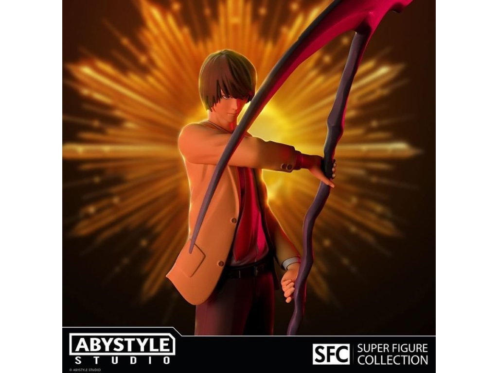 Sběratelská figurka postavy Light Yagami z japonské mangy Death Note - Zápisník smrti je v měřítku 1:10 a nechybí ani ikonická kosa. Jedinečná miniatura do každé sbírky!Doplňkové parametry