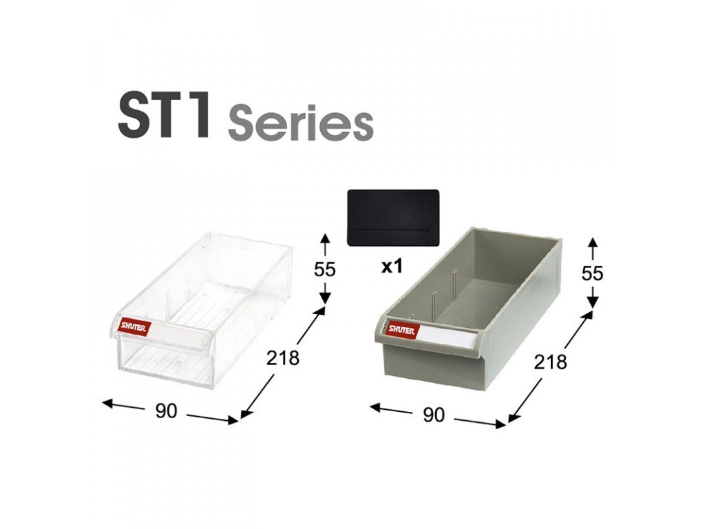 - Jednotlivé plně průhledné plastové boxy o rozměrech (Š x V x H) 90 x 55 x 218 mm.