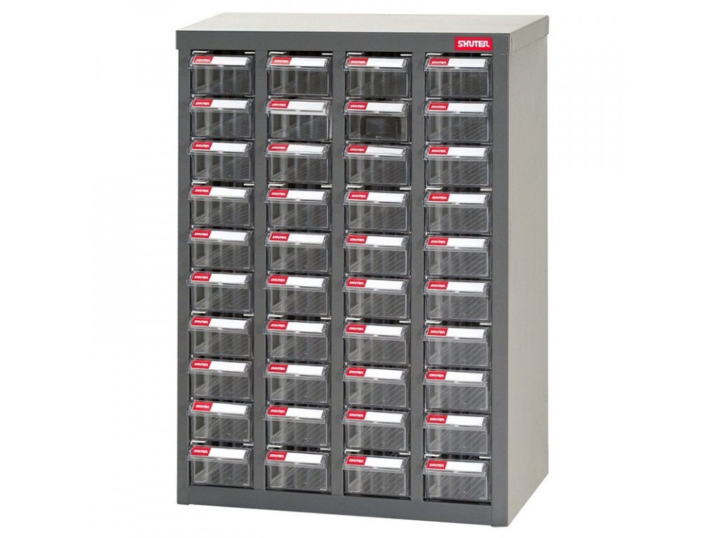 - Galvanizovaný kovový organizér pro uložení montážního materiálu a nářadí s 40 zásuvkami.