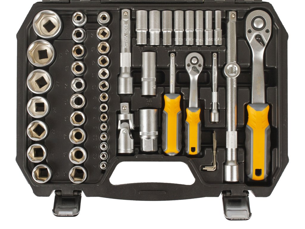 - Nástrčné klíče 1/2": 10, 11, 12, 13, 14, 15, 16, 17, 18, 19, 20, 21, 22, 24, 27, 30 a 32 mm.