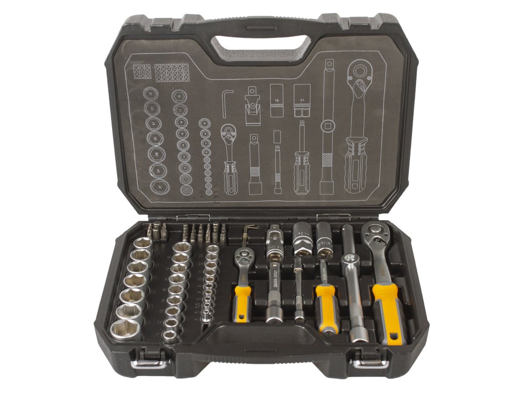 Gola sada 1/4" a 1/2" v praktickém plastovém kufříku, díky kterému sadu snadno přenesete. Díky ergonomickému tvaru rukojeti padnou ráčny se šroubovákem dobře do ruky a docílíte tak pevnějšího úchopu. Rukojeť je navíc vyrobena z protiskluzových materiálů (kombinace plastu a gumy).