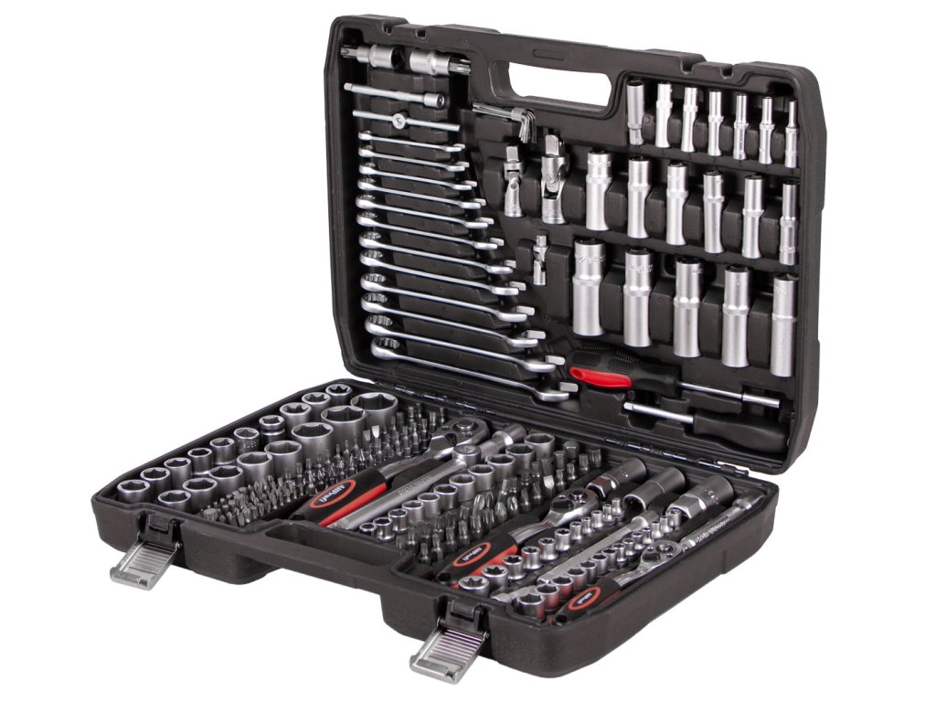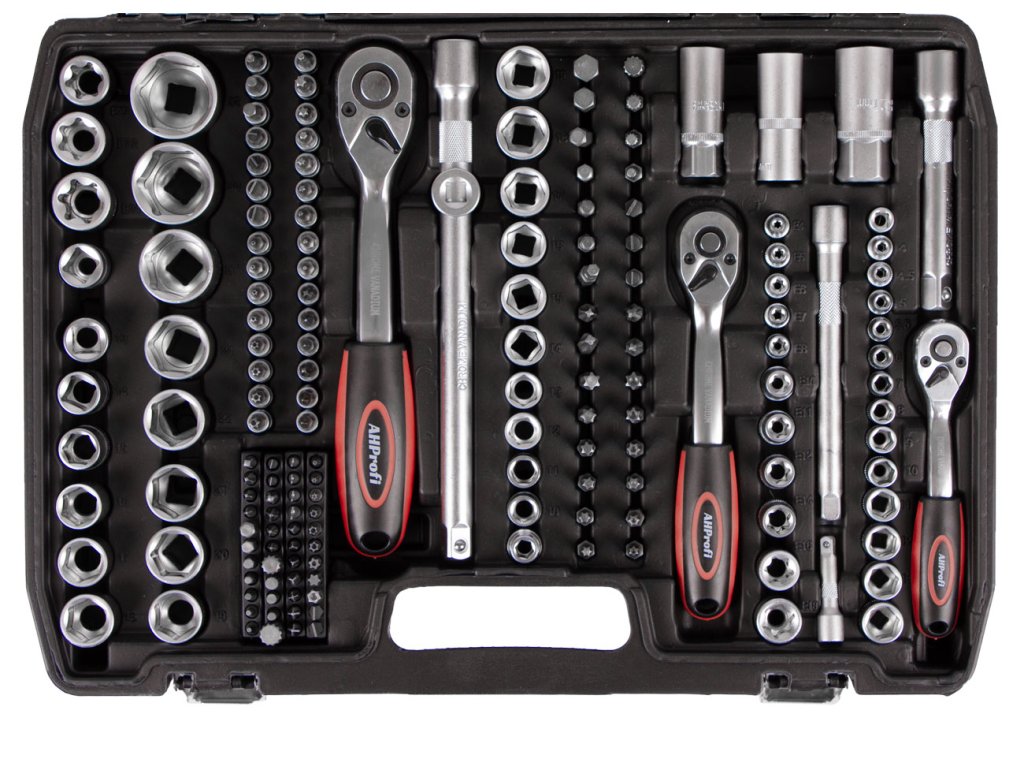 Sada nářadí v kufru s golou je vhodná do každé dílny. Gola sada obsahuje všechny tři běžně potřebné ráčny, tedy ¼", 3/8" a ½" a k nim odpovídající příslušenství v podobě klasických nástrčných klíčů, navíc prodloužených ořechů, nástrčné klíče na svíčky, hlavice s bity, očkoploché klíče apod. (viz podrobný popis). Všechny tři ráčny mají jemný krok 72 zubů pro přesnou práci i v omezeném prostoru.