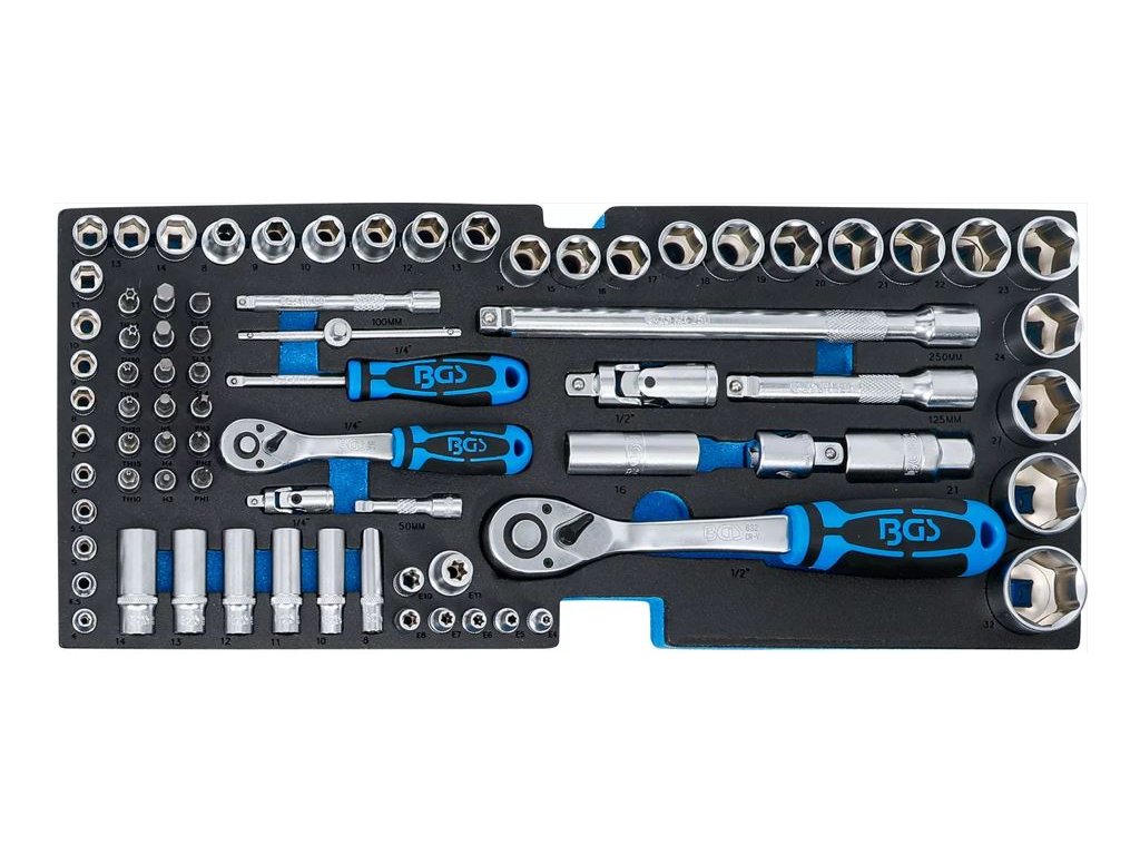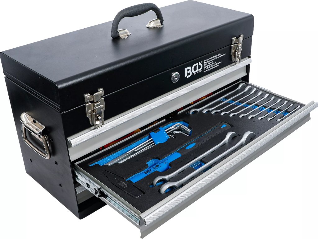 Sada nářadí v kovovém kufru | 3 zásuvky | horní přihrádka | 147 ks | BGS