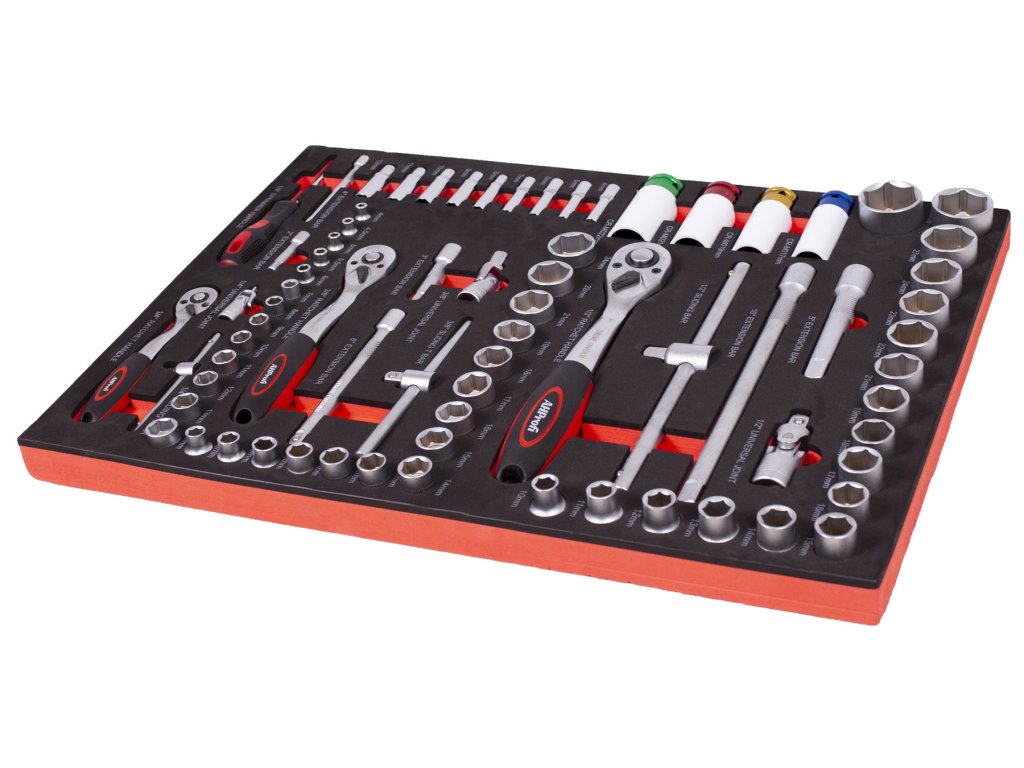 Gola sada v pěnové výplni do dílenského vozíku, 74 dílů - AH12399