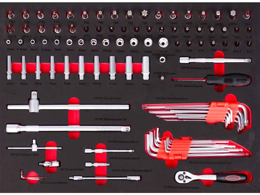 Gola sada ve výplni do dílenského vozíku, 1/4", 97 ks - AH12449-SB