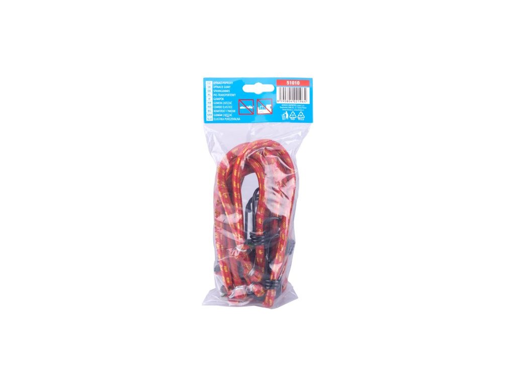 Elastické gumové víceramenné popruhy, opletené polyesterem a zakončené háky z ocelových poplastovaných drátů k uchycování zavazadel.Doplňkové parametry