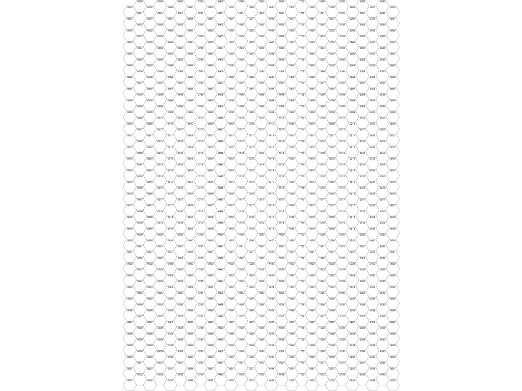 Hexový papír s číslovanými hexy