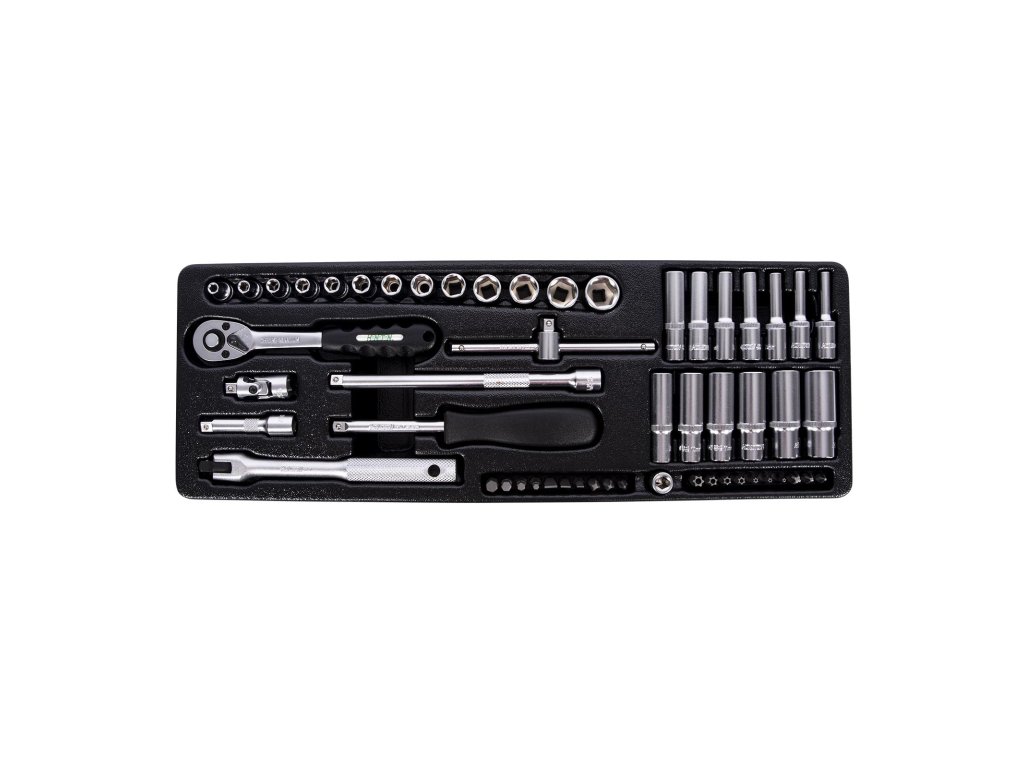 | HA085: | Sada zástrčných hlavic 10mm SPLINE TRX IMBUS 3/8"1/2" 40 dílů, plastové plato |