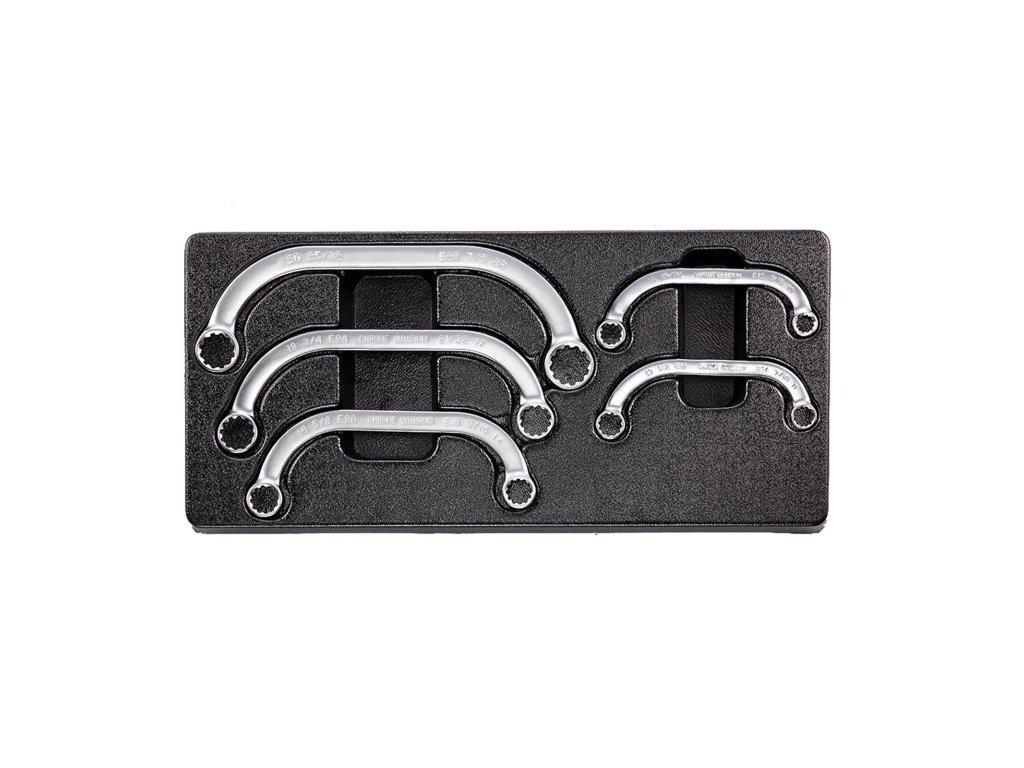 | HA021-1: | Sada očkových zahnutých klíčů 5 dílů - matné, plastové plato |