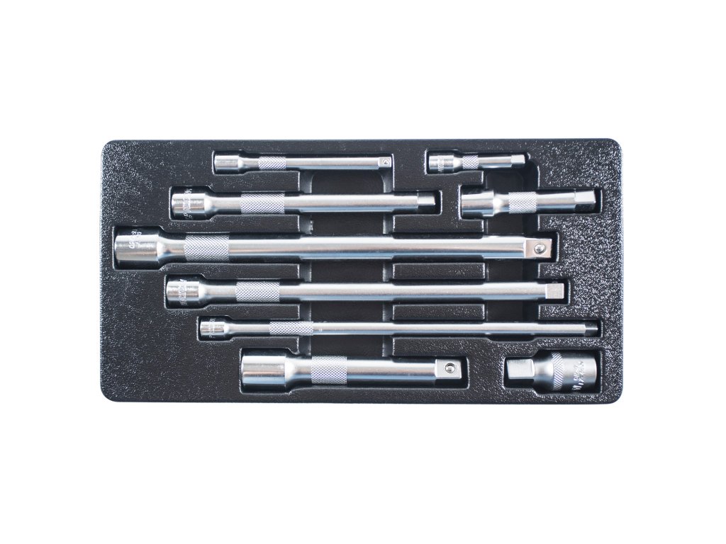 | Nástavec: | 1/4": 50, 100, 225 mm; 3/8": 75, 150, 225 mm; 1/2": 50, 125, 250 mm |