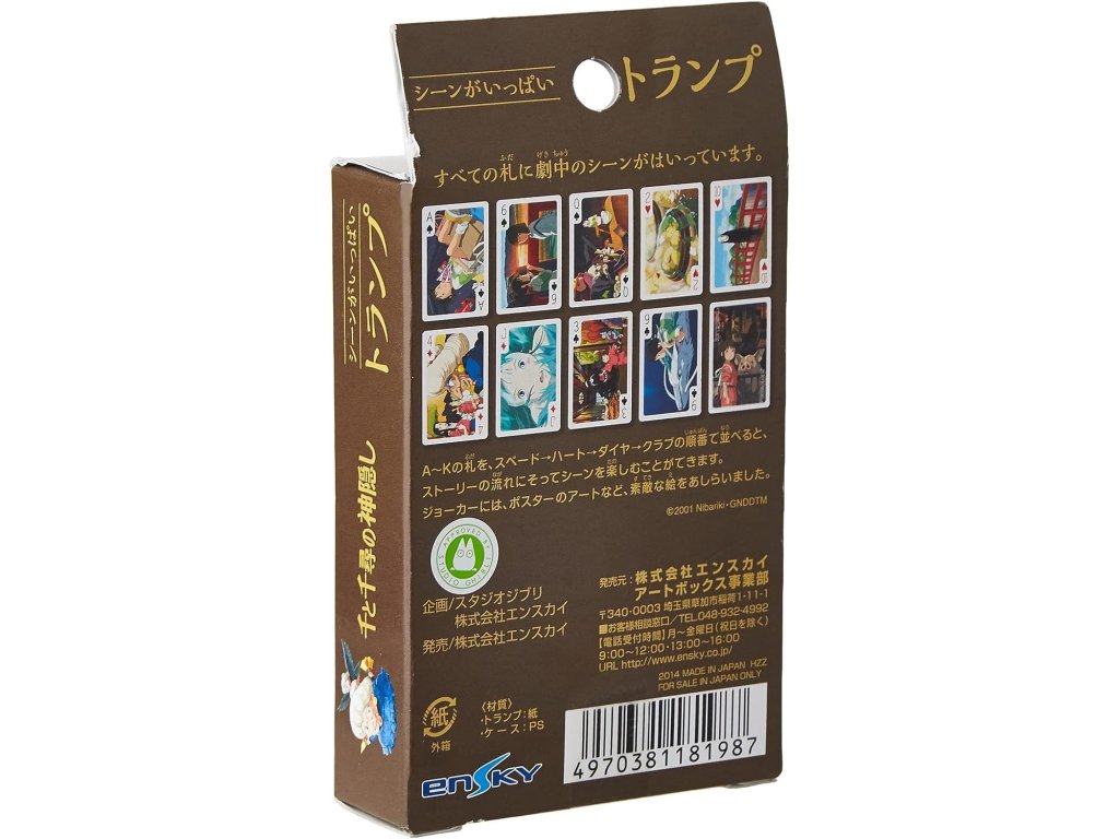 S originálními hracími kartami podle japonského anime filmu Spirited Away (Cesta do fantazie) od Studia Ghibli si užijete vaši oblíbenou karetní hru!Doplňkové parametry