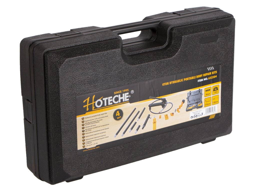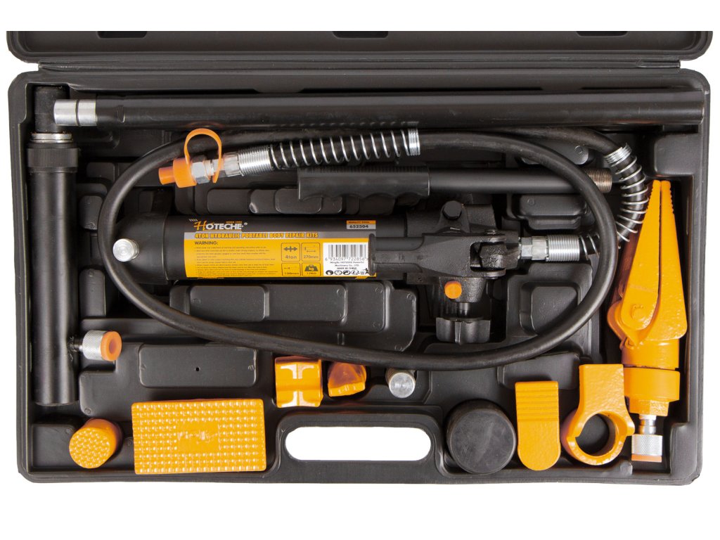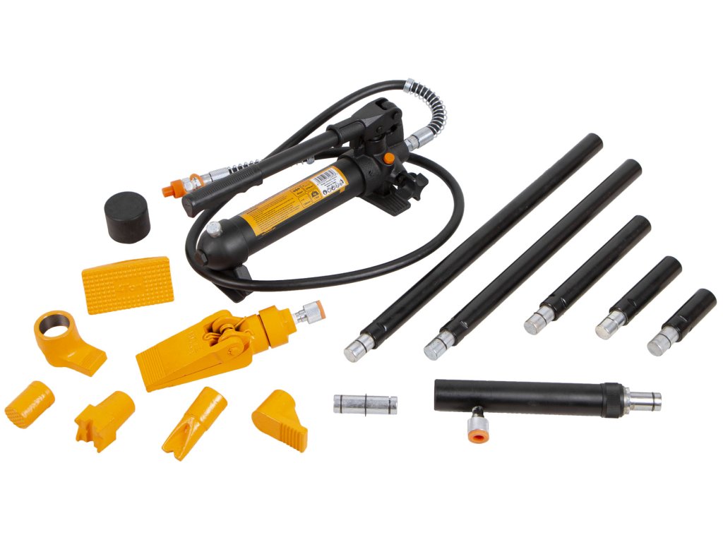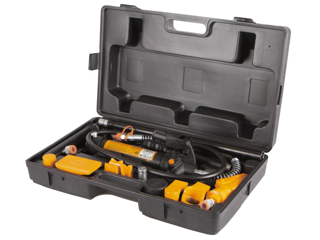 Tato přenosná sada uložená v plastovém kufru se skládá z hydraulického válce a 14ti dílů příslušenství. Rozpínací síla pumpy je 4 tuny a zdvih pístu 120 mm.