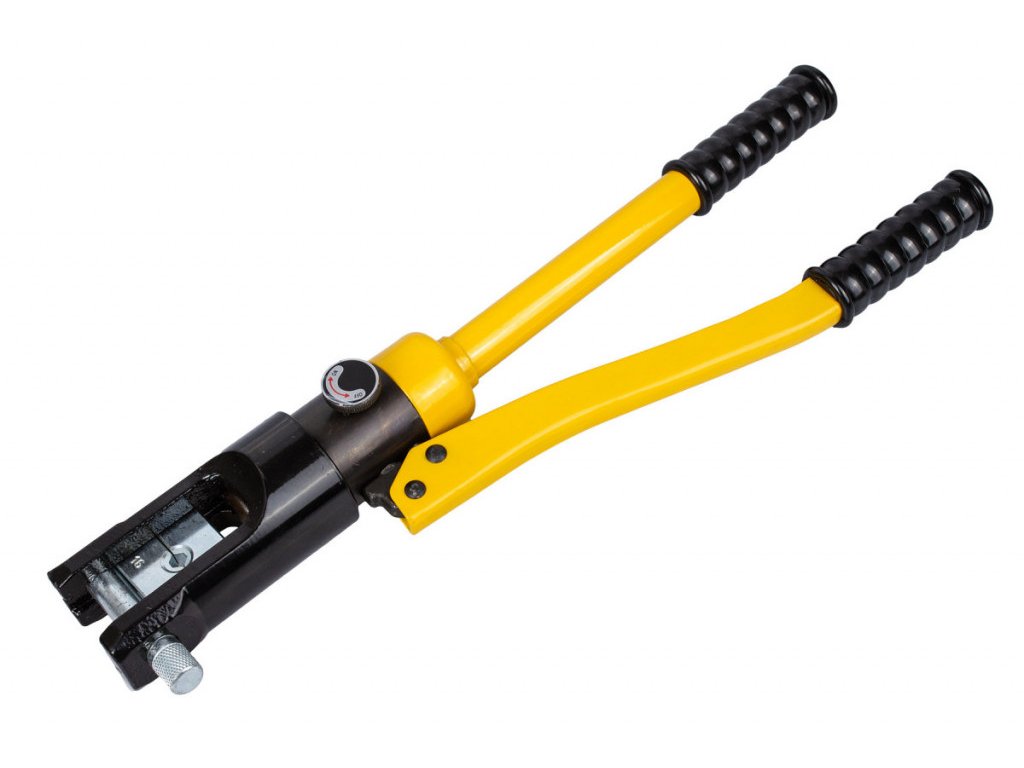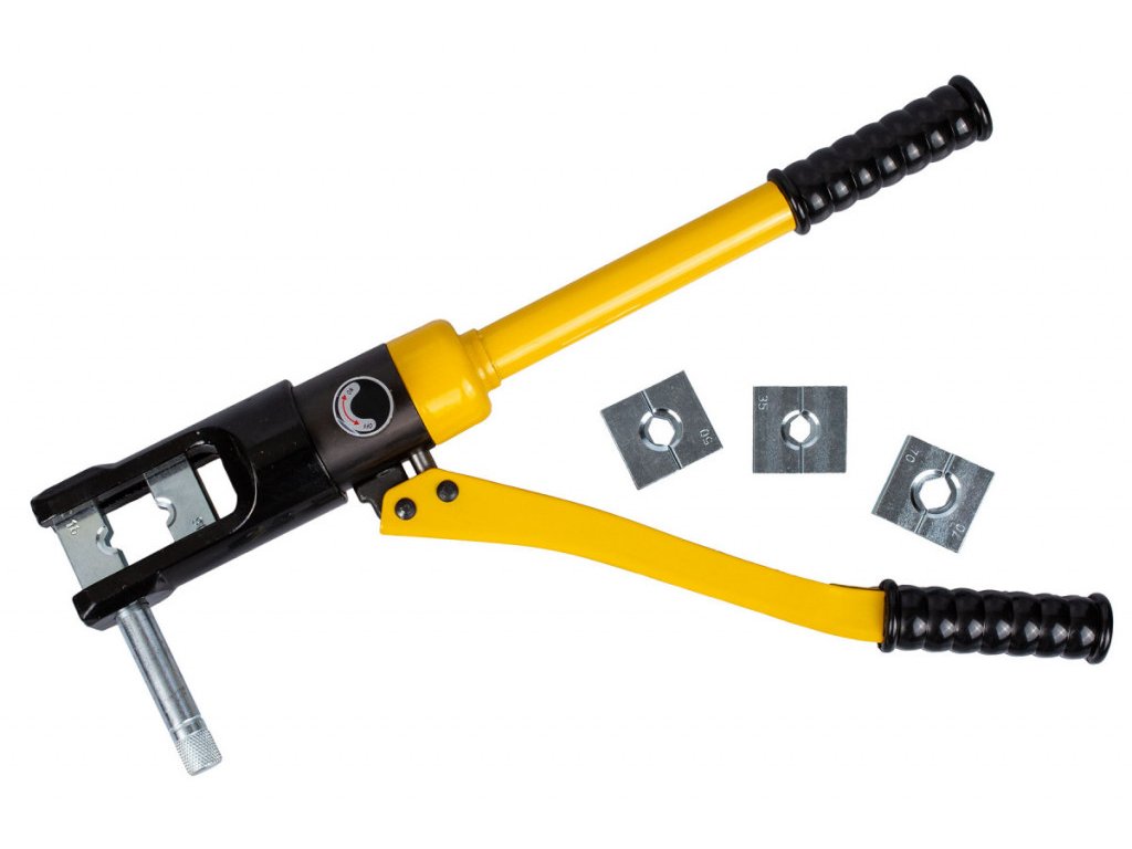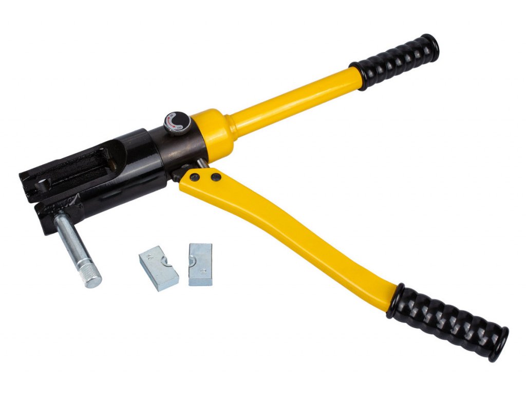 Lisovací kleště na koncovky kabelů s hydraulickým posilovačem s maximálním tlakem 8 tun. Ke kleštím jsou v balení lisovací koncovky pro vodiče o rozměrech 16 - 300 mm2. Síla tlaku čelistí je regulovatelná a díky převodu hydraulické síly je lisování koncovek velmi jednoduché. Kleště s koncovkami jsou v plastovém boxu. Hydraulické lisovací kleště váží 2,8 kg a jsou 470 mm dlouhé.