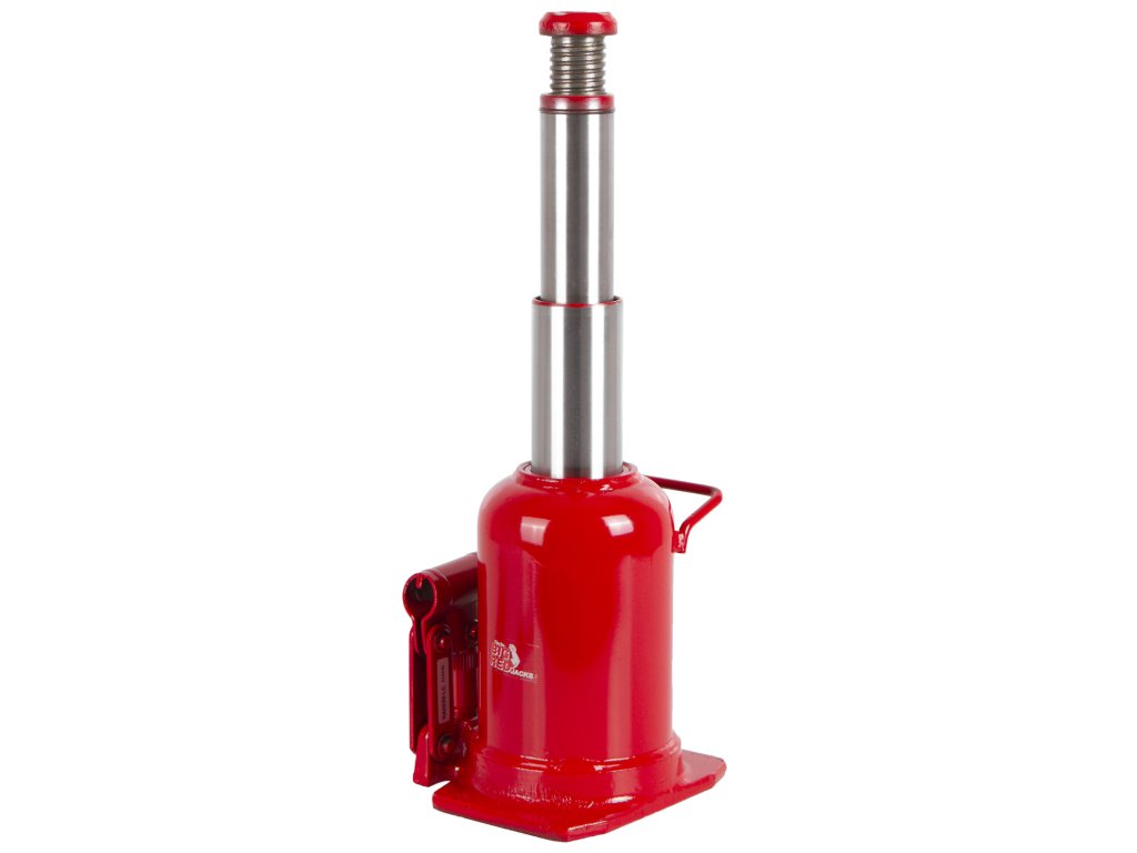 Pístový zvedák (panenka) s dvoustupňovou hydraulikou s nosností 10t. Základní výška v zataženém stavu je 210 mm. Díky napumpování obou pístů můžete břemeno zdvihnout až do výšky 448 mm. Můžete si pomoci vytočením závitu patky a zvýšit rozsah zdvihu ze základní výšky 288 mm (základní výška + 78 mm šroubování) až do max zdvihu 520 mm.