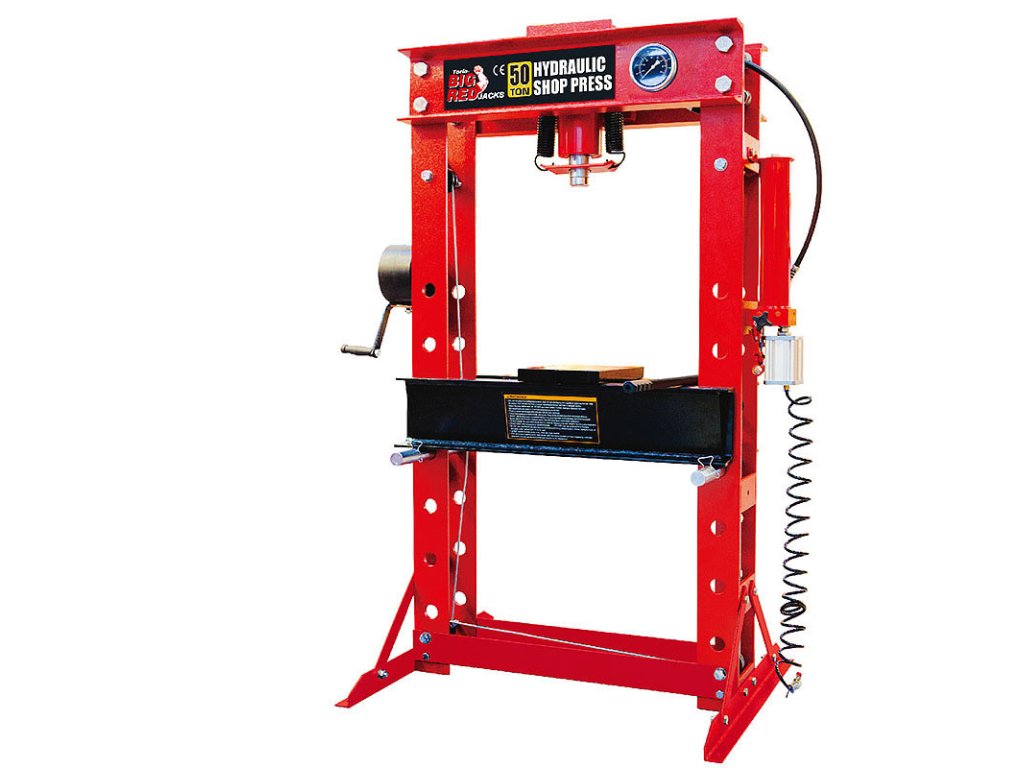 PROFESIONALHydraulický dílenský lis s lisovací silou až 50 tun je ideální pro lisování ložisek, rovnání os, hřídelí nebo stlačování materiálu v profesionálních dílnách.