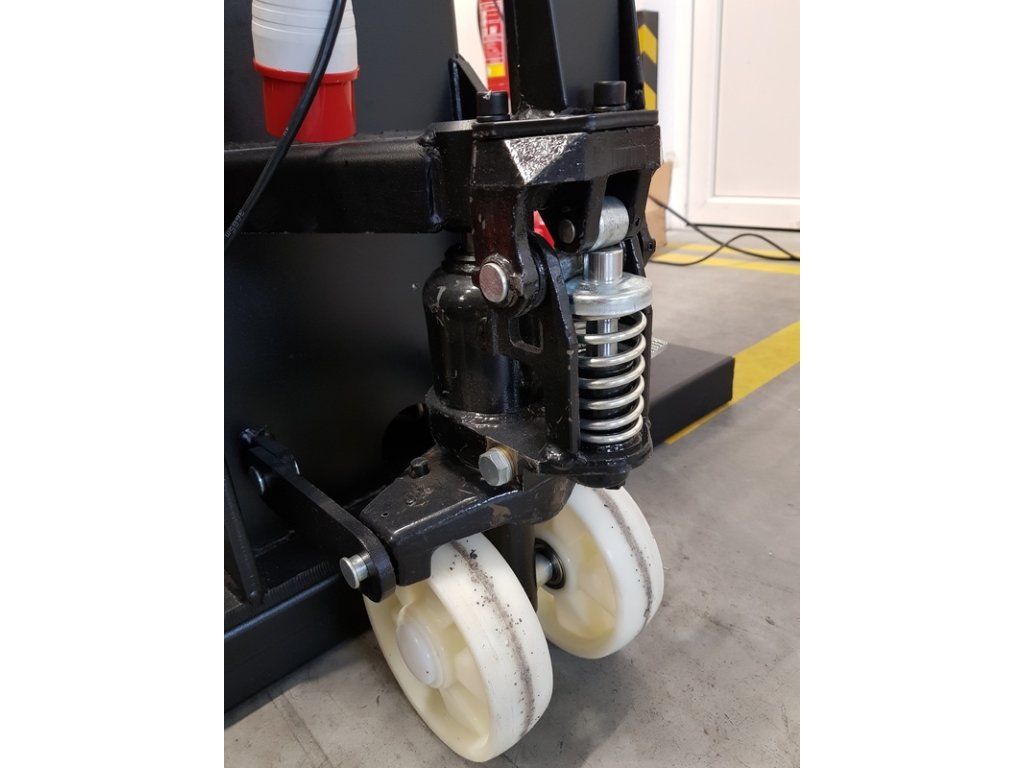 Zvedák je opatřen koly a bez zátěže umožňuje snadné přemísťování podle potřeby. Je proto výhodný pro pomocné práce a pro menší dílny.