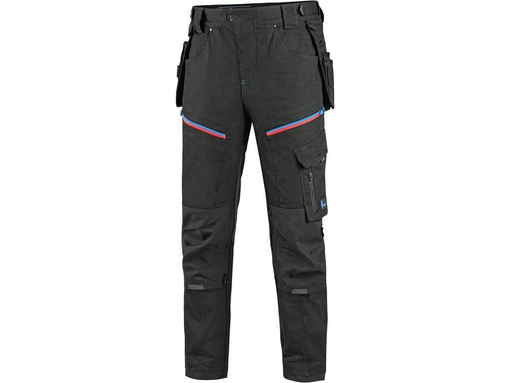 Kalhoty CXS LEONIS, pánské, černé s modro/červenými doplňky