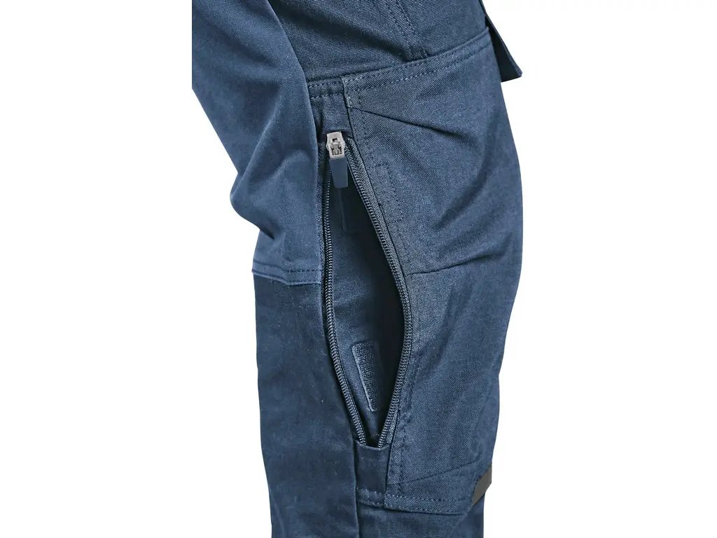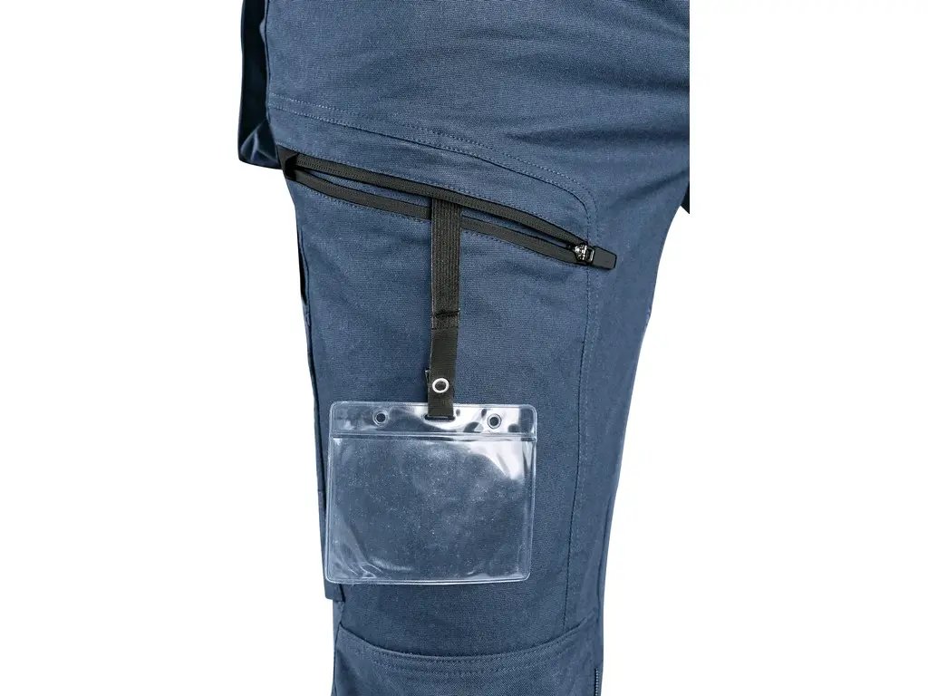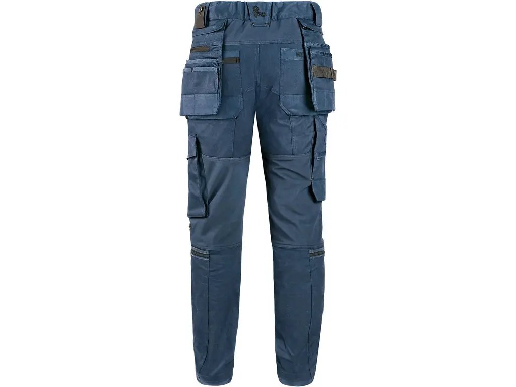 Pánské pracovní kalhoty moderního střihu slim-fit. Kombinace kvalitního směsového materiálu s elastanem a 4-way stretch materiálu v exponovaných místech umožňuje volný a pohodlný pohyb. Vybavení kalhot: flexibilní pas s možností upravení velikosti a poutky na opasek, na vnitřní straně pasu protiskluzový potisk, 2 přední kapsy, 2 odnímatelné kapsy na nářadí vyztuženy materiálem CORDURA®, stehenní zipové kapsy s možností ventilace, boční kapsa se zipovou kapsou, 2 zadní kapsy (jedna zipová) vyztuženy materiálem CORDURA®, kapsa na skládací metr s dalšími přihrádkami, ergonomicky tvarovaná kolena zesílena materiálem CORDURA® s možností vložení kolenních výztuh bočním vkládáním a ventilací, kapsa na ID kartu, spodní část nohavic vyztužena materiálem CORDURA®, reflexní doplňky. Kalhoty jsou vybaveny EASY-PROLONG systémem, který umožňuje snadné prodloužení střihu na vyšší postavu uvolněním švu na nohavicích. Doporučené použití: strojírenství, stavebnictví, lehký průmysl, automobilový průmysl, logistika, skladování, spedice, autoservisy, údržba, montáže, zemědělství, zahrada, hobby a volný čas.