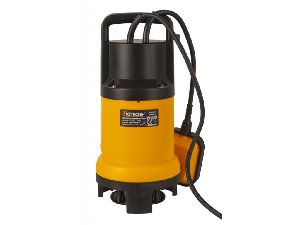 Ponorné čerpadlo s výkonem 750 W značky Hoteche s průtokem až 13 000 litrů za hodinu odčerpá vodu ze zatopených sklepů, výkopů, studen, nádrží a dalších zavodněných míst velmi rychle.