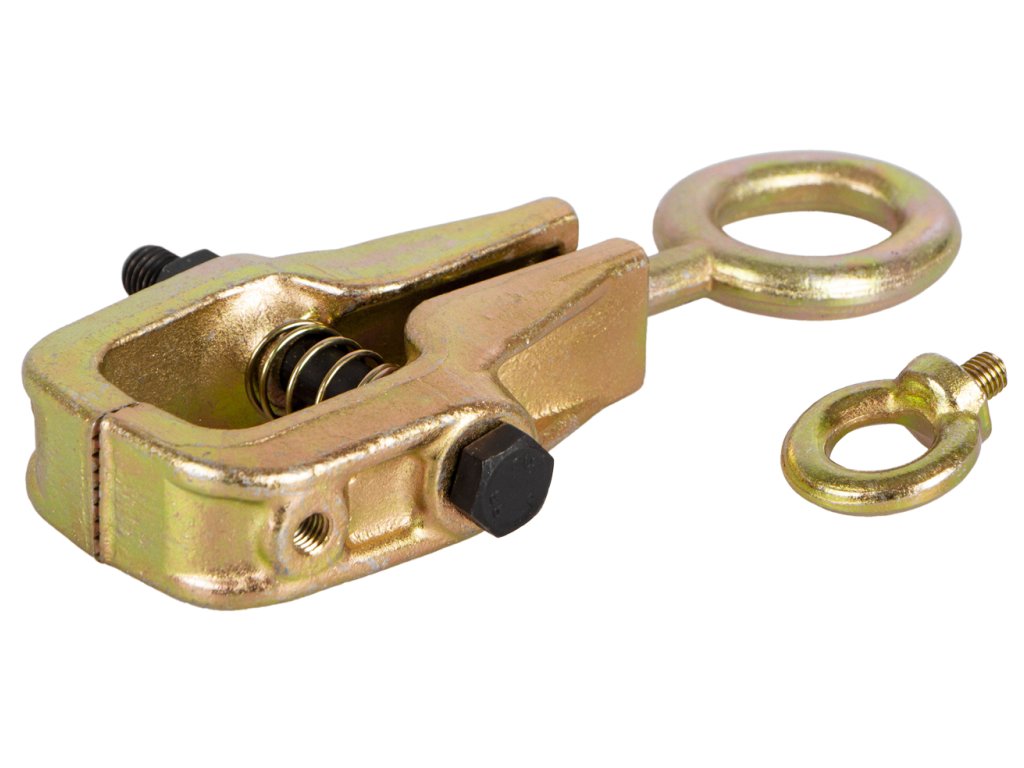 Svěrka má dvě kovová oka, lze tedy použít pro dva směry tahu (přímý, boční).