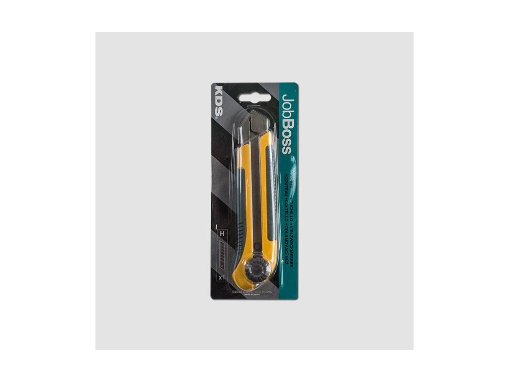 Ulamovací nůž s kovovou vodící lištou, kolečkem pro utažení čepele a zásobníkem na náhradní čepelky.Doplňkové parametry