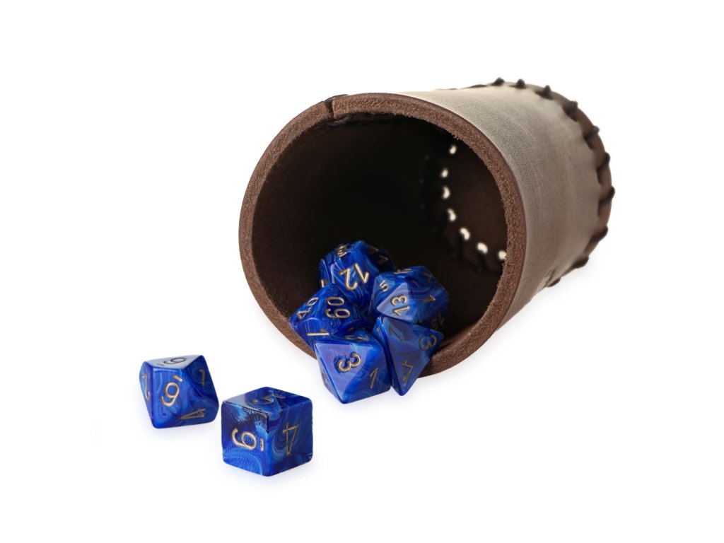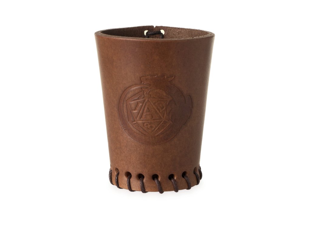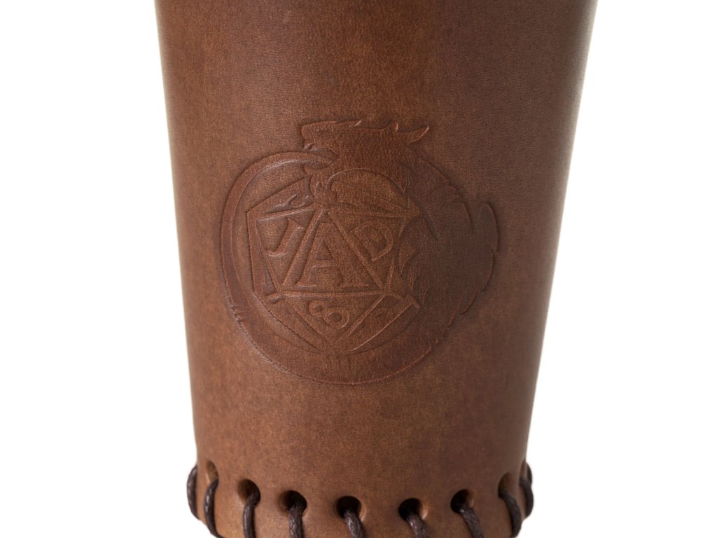 Kožený kelímek na vrhání kostek s smotivem hry na hrdiny Jeskyně a draci. Hodí se nejen k hraní tohoto RPG, ale i při jakýchkoli hrách, kde se hází kostkami. Kelímek je vyroben ručně v naší dílně z přírodní hovězí kůže dobarvené hnědou barvou, sešněrovaný je pevnou voskovanou šňůrkou a zdobí jej vytlačený motiv JaD.Buďte první, kdo napíše příspěvek k této položce.
