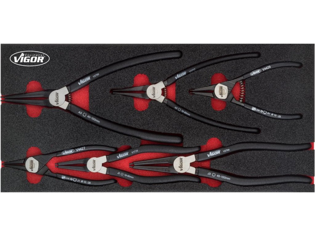 Kleště na pojistné kroužky ve vložce do dílenského vozíku, 6ks VIGOR - V4999
