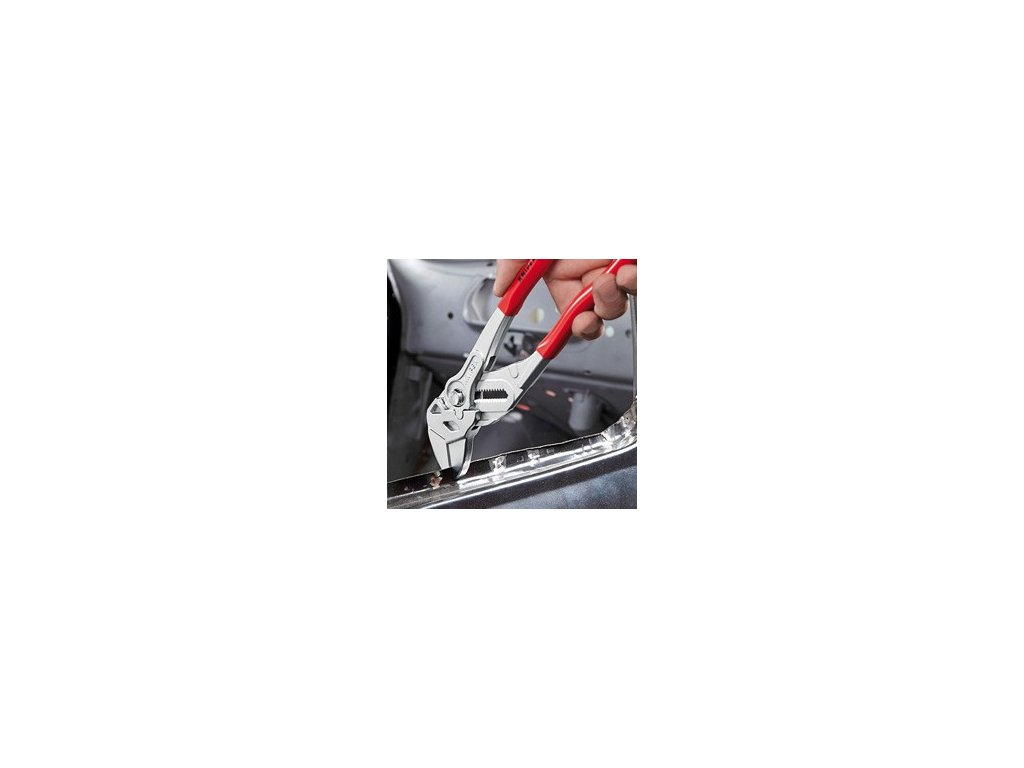 - Hladké čelisti pro šetrnou montáž povrchově zušlechtěných armatur - práce přímo na chromu!