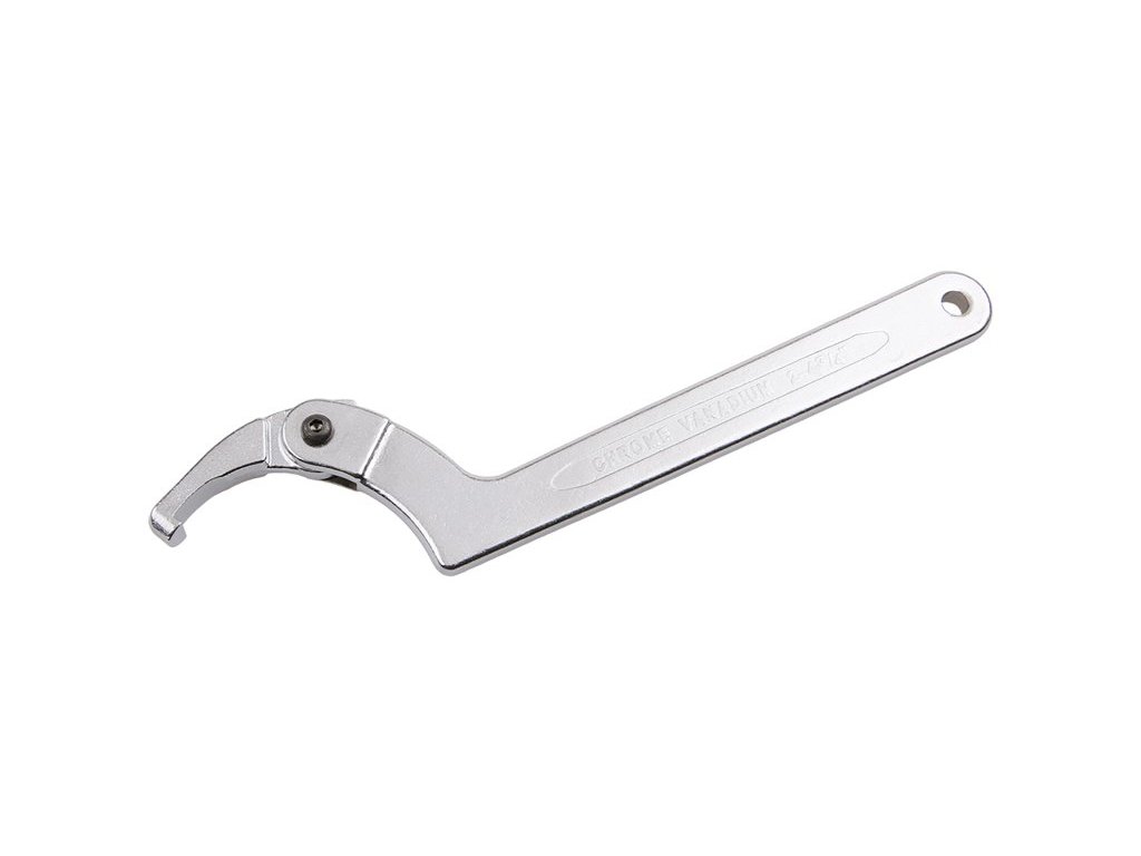 Stavitelný hákový klíč pro límce, kroužky a ložiska. Jediná čelist s upínacím kolíkem v průmyslové povrchové úpravě. Při používání zajistěte přesné nasazení háku čelisti. Provedení: matný chromovaný povrch, kovaný, chrom vanadiová ocel.Doplňkové parametry