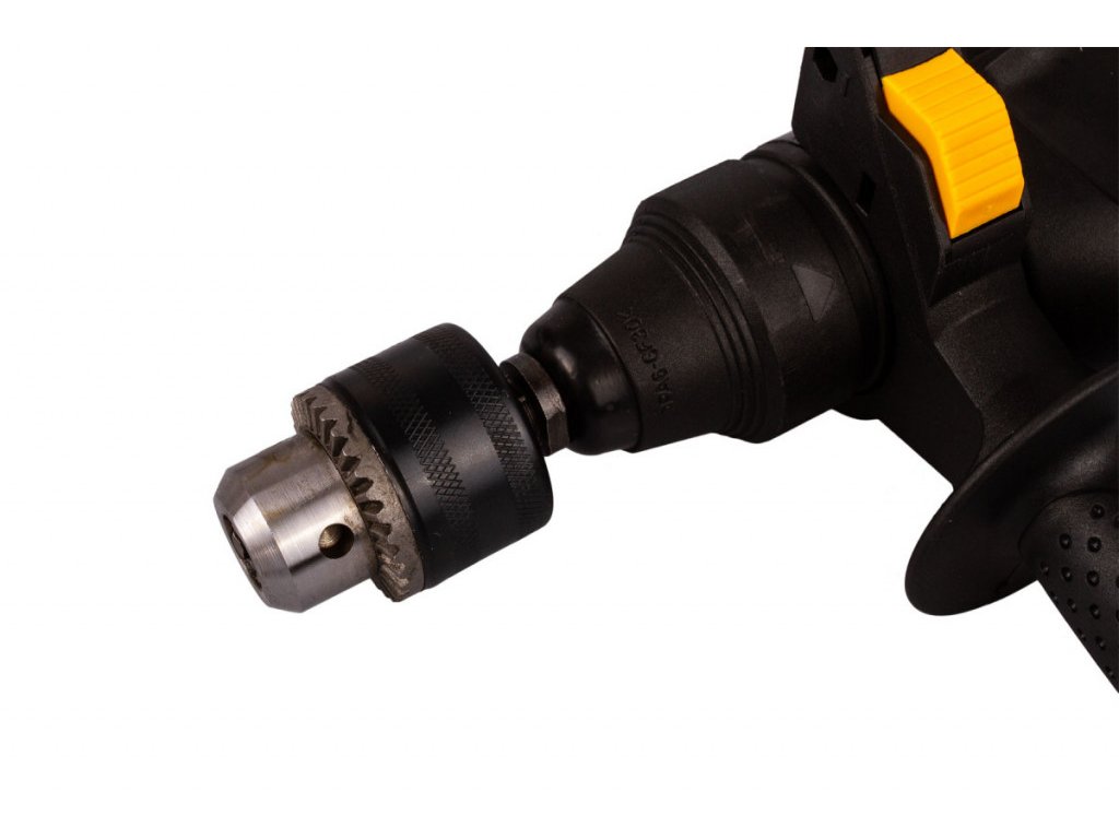 Do vrtačky lze za pomoci ozubeného sklíčidla upevnit vrtáky průměru 1,5 až 13 mm. K tomu Vám dopomůže klička na sklíčidlo, která je součástí balení. Lze ji připnout pod rukojeť a můžete ji tak mít v případě potřeby neustále při sobě. Klasické sklíčidlo lze také vyměnit za SDS.