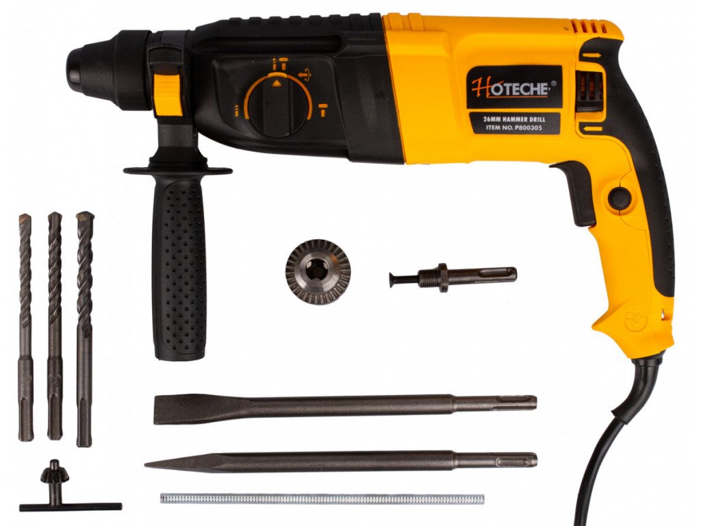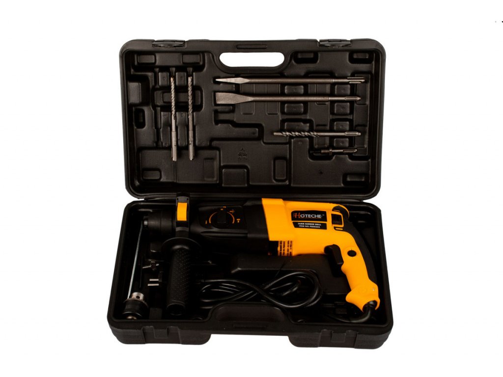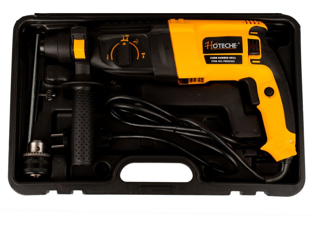 Příklepová vrtačka značky Hoteche s příkonem 800 W vyvine 900 ot./min. a 4000 úderů/min. na prázdno. Vysoký výkon vrtačky si zvládne poradit s běžnými materiály jako je dřevo, kov, plast a jiné. S funkcí příklepu si snadno poradí i s vrtáním do zdiva a stavebních materiálů. Vrtačka zvládne max. ø vrtu 30 mm do dřeva, 26 mm do betonu a 13 mm do oceli.