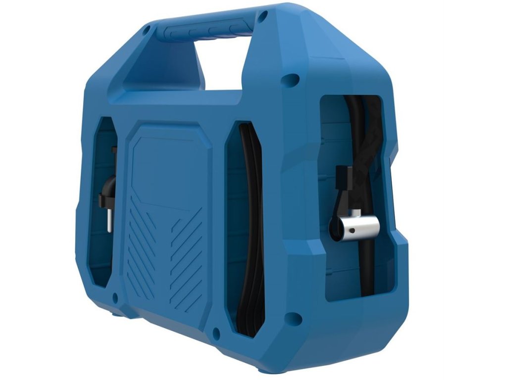 Vybavení: 0,6 m vysokotlaká hadice s ventilovou zástrčkou, přihrádka na adaptéry, rukojeť pro přenášení.