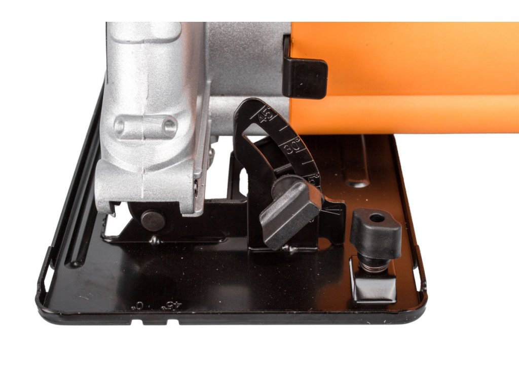 Pevnou ocelovou základnu pily můžeme vyklopit až do úhlu 45° a tím vytvořit precizní rohy. Prořez je až 65 mm při řezu v úhlu 90° a 44 mm při řezu v úhlu 45°, přičemž prořez můžeme ovlivnit vyklopením základní desky ve svislém směru. Pro přesné naměření řezu poslouží posuvné měřítko se stupnicí 0 - 20 cm.