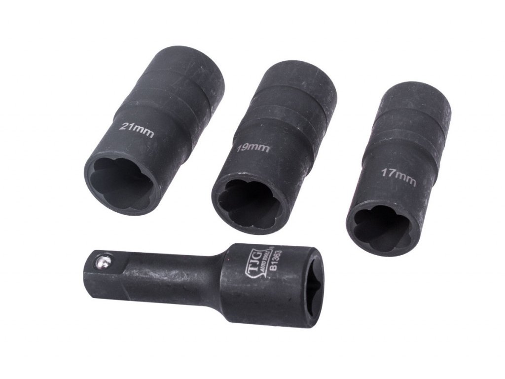 - Sada se používá zejména k uvolňování/povolování bezpečnostních šroubů/matic kol nebo šroubů/matic kol, které nelze běžným způsobem povolit/odšroubovat. Za tímto účelem mají hlavice speciální profil.
