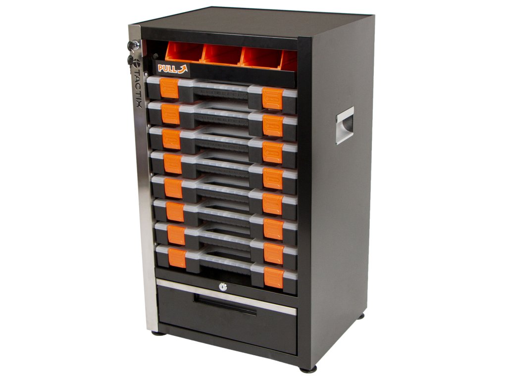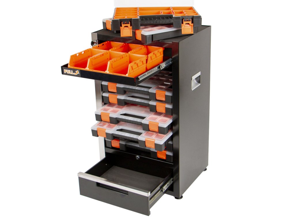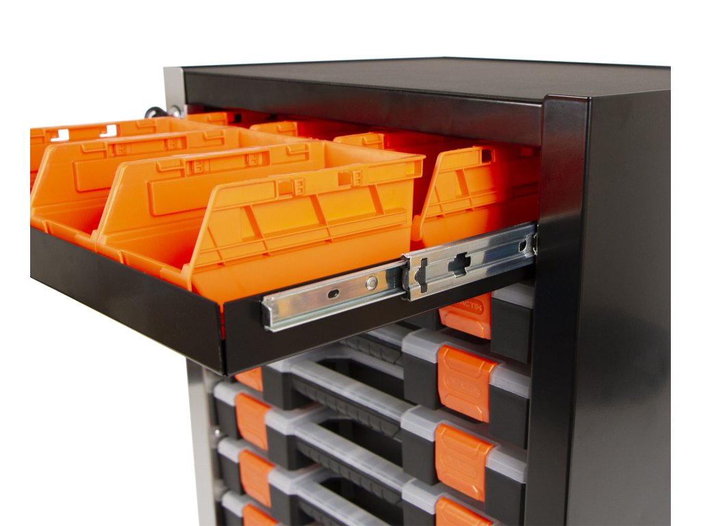 Kvalitní kovová skříňka určená pro organizaci drobného dílenského vybavení a materiálu.