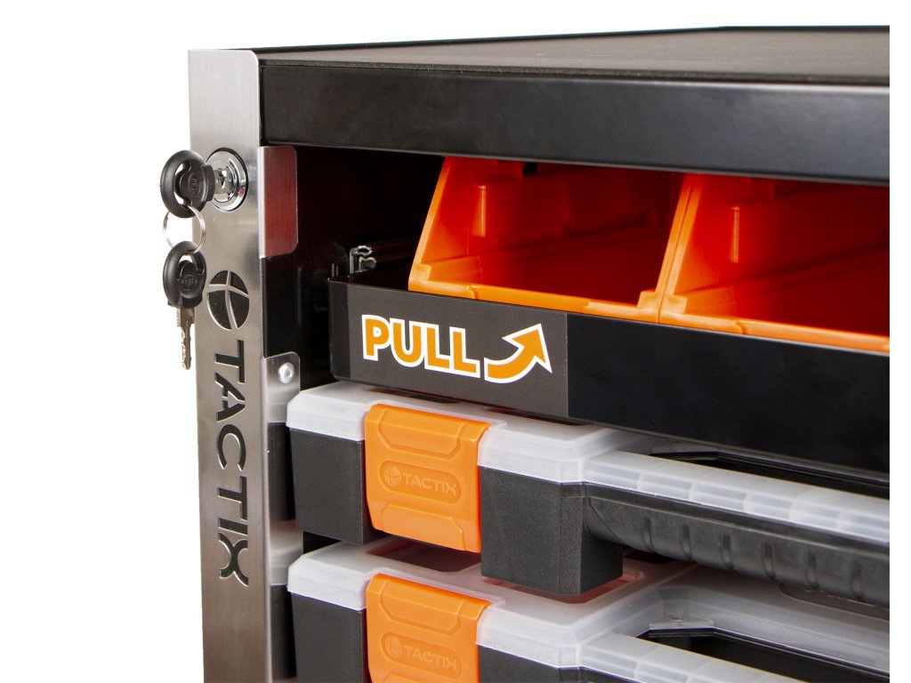Horní šuplík je vybaven 6-ti plastovými boxy pro větší přehled uloženého materiálu.