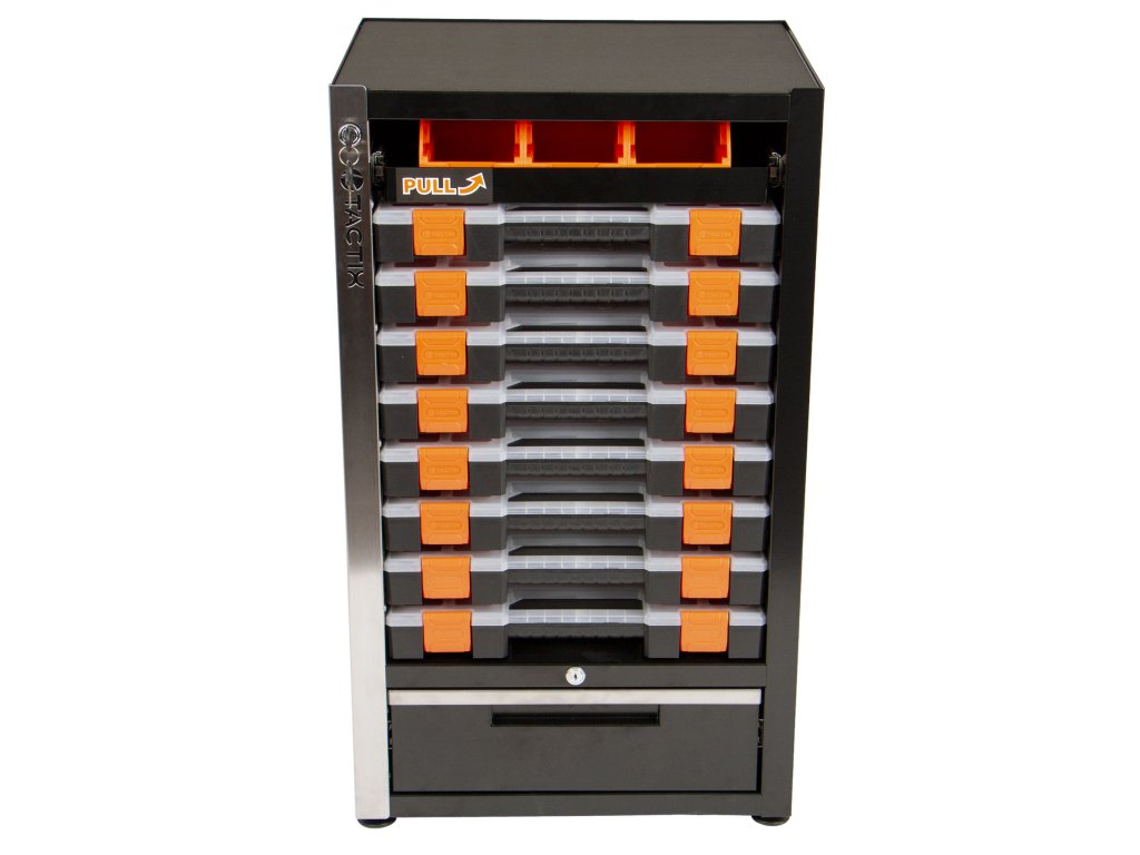 Ve skříňce se nachází 8 vyjímatelných plastových organizérů a 2 šuplíky.