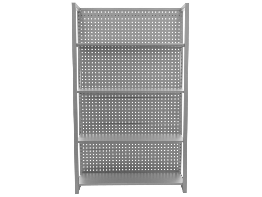 Stabilitu regálu zajišťují dvě bočnice a zadní děrovaná deska, která lze také využít pro zavěšení drobného nářadí pomocí háčků (háčky nejsou součástí balení).