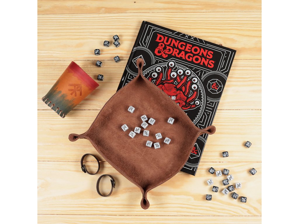 Podložka vyrobená z hovězí kůže Velur, která se perfektně hodí pro hraní RPG i k deskovkám. Podložku na házení kostek snadno stočíš do ruličky, sepneš kovovými druky, hodíš do batohu a můžeš vyrazit na cesty. Díky stylovému dice trayi už se ti žádná kostka nezakutálí z dosahu a můžeš ji bez obav využít pro hody kovovými kostkami. Perfektní dárek pro vášnivé hráče deskovek a Dungeon Mastery. Rozměry: zavinuté: 25 x 4 cm v rozvinutém stavu: 25 x 25 cm složené: cca 17 x 17 x 4 cmDoplňkové parametry