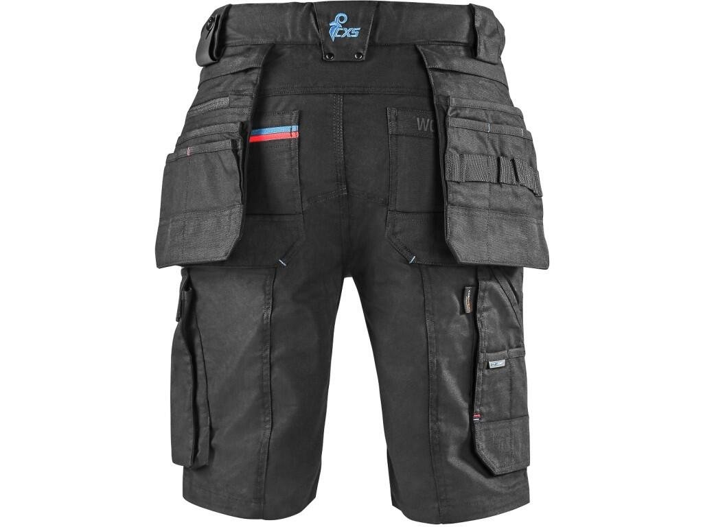 Pánské pracovní kraťasy s kontrastními barevnými doplňky. Kombinace kvalitního směsového materiálu s elastanem a 4-way stretch materiálu v exponovaných místech umožňuje volný a pohodlný pohyb. Vybavení: flexibilní pas s možností upravení velikosti a poutky na opasek, protiskluzový potisk na vnitřní straně pasu, 2 přední kapsy, 2 odnímatelné kapsy na nářadí vyztuženy materiálem CORDURA®, stehenní zipové kapsy s možností ventilace a kapsou na ID kartu, boční kapsa se zipovou kapsou, 2 zadní kapsy (jedna zipová) vyztuženy materiálem CORDURA®, kapsa na skládací metr s dalšími přihrádkami, reflexní doplňky. Doporučené použití: letní pracovní oděv, strojírenství, stavebnictví, lehký průmysl, automobilový průmysl, logistika, skladování, spedice, autoservisy, údržba, montáže, zemědělství, zahrada, hobby a volný čas.