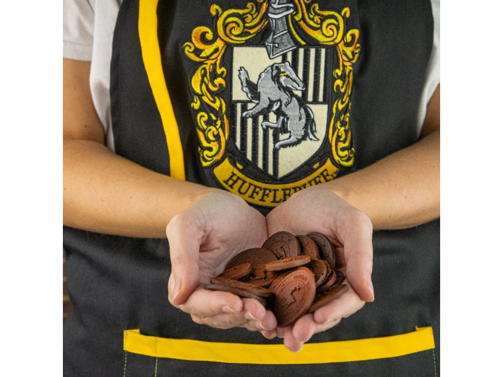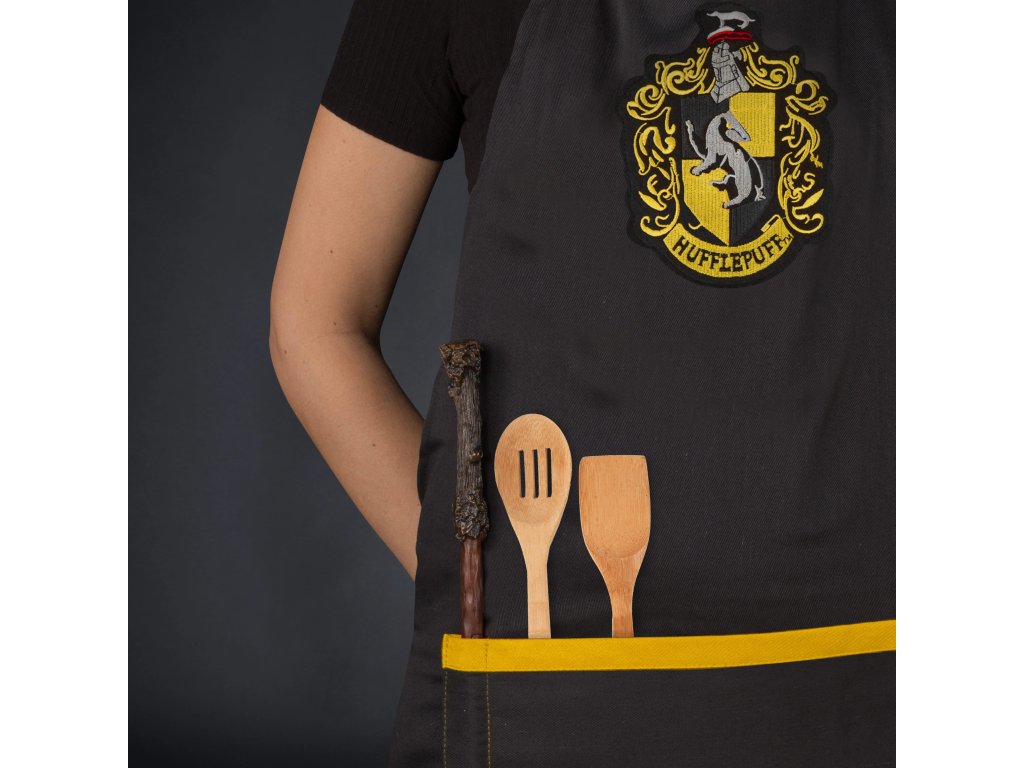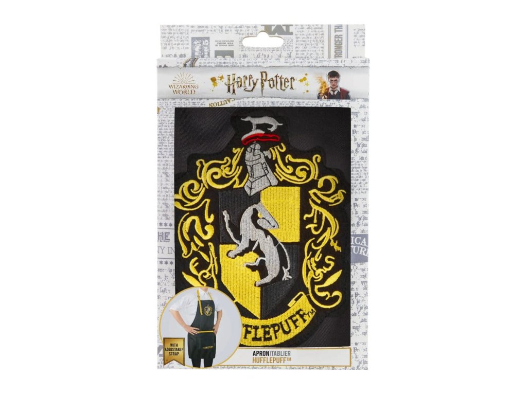 S touto hezkou kuchyňskou zástěrou se znakem koleje Mrzimor z bradavické školy čar a kouzel hravě zvládnete všechny nástrahy vaření, ať už magické či nemagické! Zástěra je vybavena velkou kapsou, do které můžete ukrýt kuchyňské pomůcky i dobroty na ujídání. Skvělý společník do kuchyně pro každého fanouška Harry Pottera.Doplňkové parametry