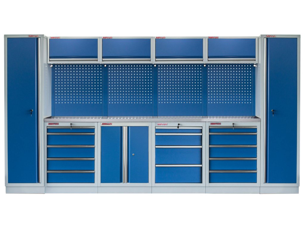 Dílenský nábytek PROFI BLUE je plně modulární. Každá skříňka je navržena s ohledem na maximální flexibilitu. Jednotlivé komponenty zaměníte a umístíte podle vašich potřeb. Bez problému tak přidáte další skříňky na jakoukoliv pozici nebo sestavu můžete rozšířit o regály, ponk, dílenské vozíky s nářadím i prázdné nebo multifunkční skříňky.